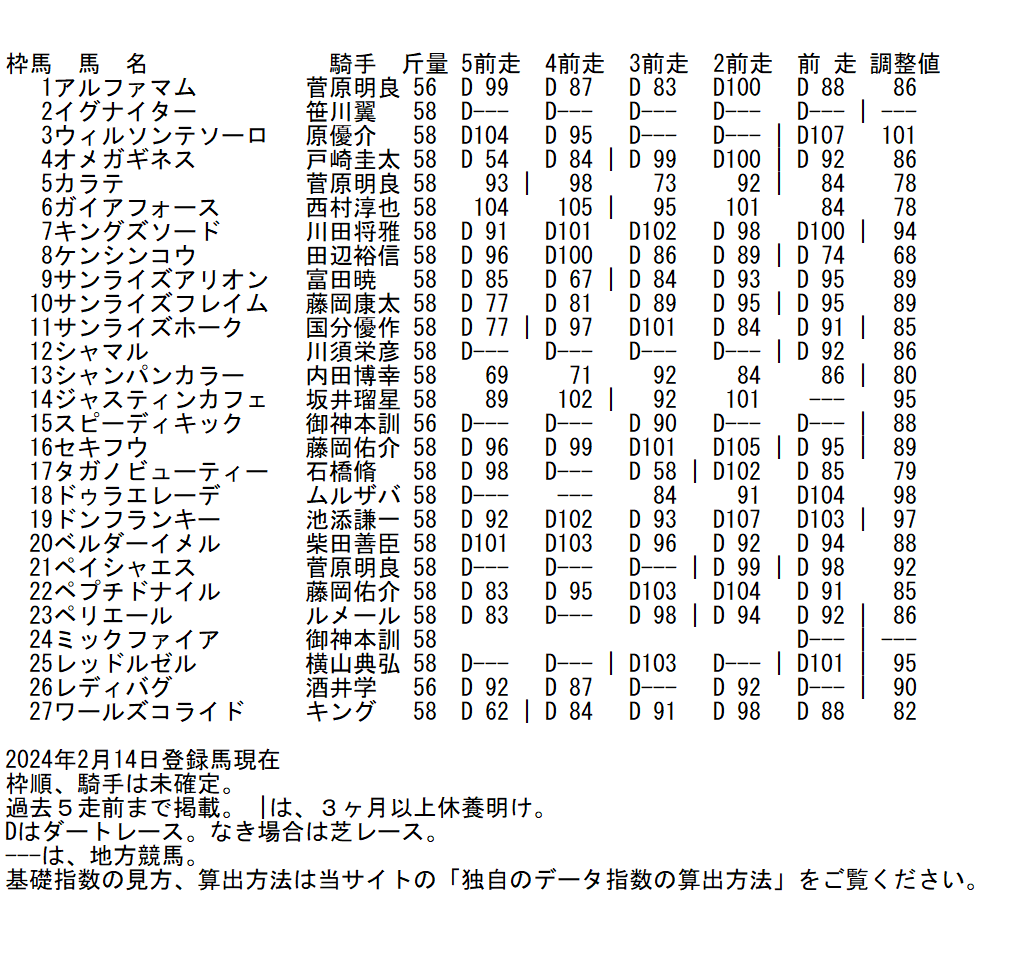 当日のオッズなどからの補正値がなく、正確な指数ではありませんが、