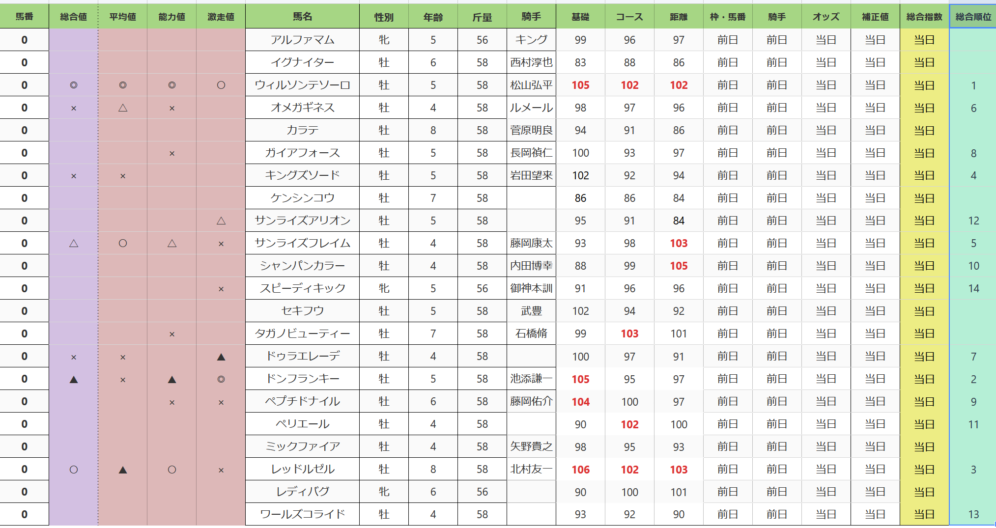 前日段階でも十分に発揮でき、当日の指数と同じく、