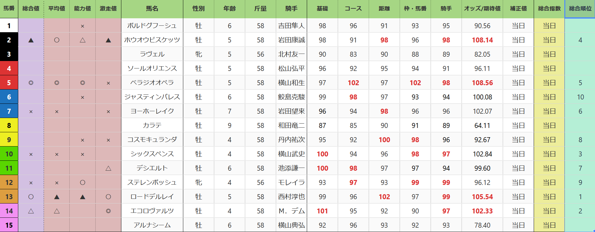 前日段階でも十分に発揮でき、当日の指数と同じく、